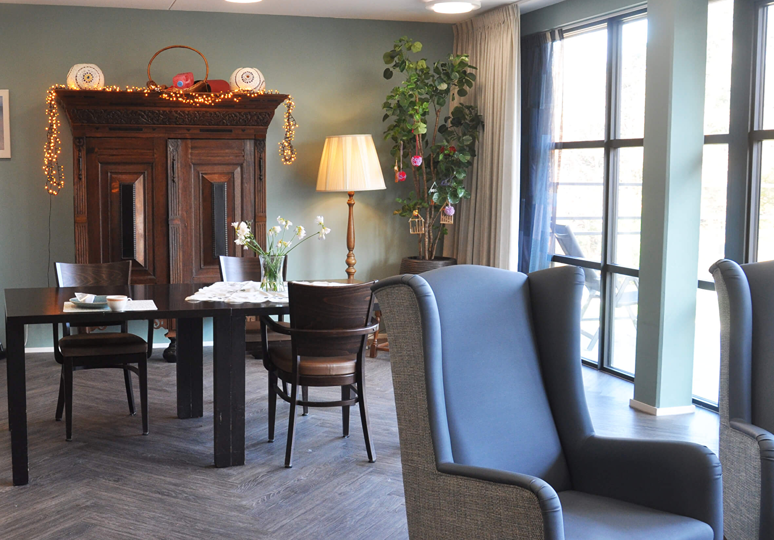 In onze zorglocatie Wildhoef kunnen 66 mensen wonen. In het gebouw is zoveel mogelijk interactie gecreëerd met de prachtige, parkachtige tuin rondom. De zee is dichtbij, net als het centrum van Bloemendaal met winkels, restaurants en sfeervolle terrasjes. In de aangrenzende vleugel bevinden zich de service-appartementen van Wildstaete, waar senioren zelfstandig wonen.